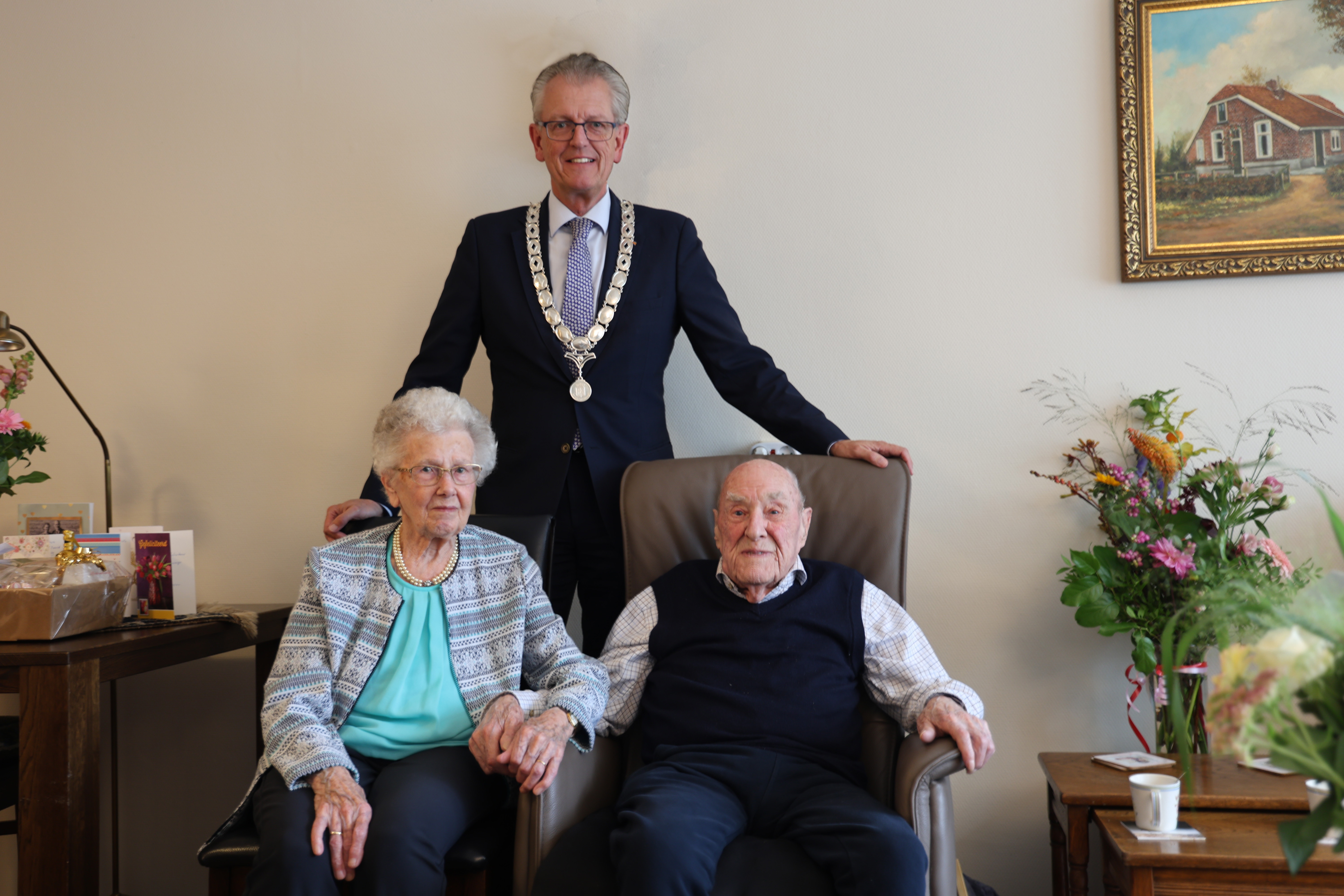 Burgemeester op bezoek bij platina bruidspaar Westera