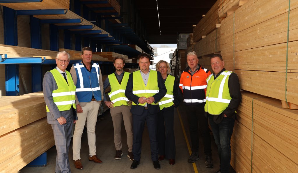 Tijdens het bezoek van de burgemeester en wethouders aan houtbouwspecialist De Groot Vroomshoop in de gelijknamige plaats werd al snel duidelijk hoe indrukwekkend het bedrijf is. Het terrein beslaat maar liefst 10 hectare. Wie door de hallen loopt ziet dat alles om hout draait. Directeuren Wim Sturris en Gerard Beltman namen de bestuurders en de bedrijfscontactfunctionaris mee door de geschiedenis van het bedrijf en vertelden hoe De Groot Vroomshoop zich heeft ontwikkeld tot een toonaangevende speler in de houtbouw.